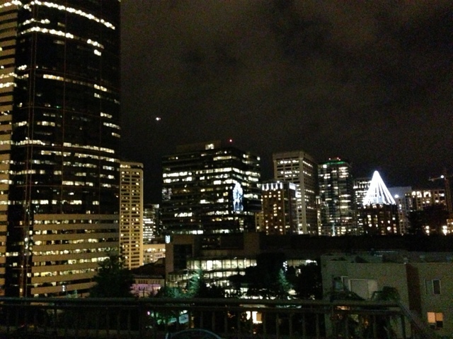 Donnan jobbar sent idag. Det är mörkt utanför fönstren och hela bygget är tomt. Endast tomten är vaken :)